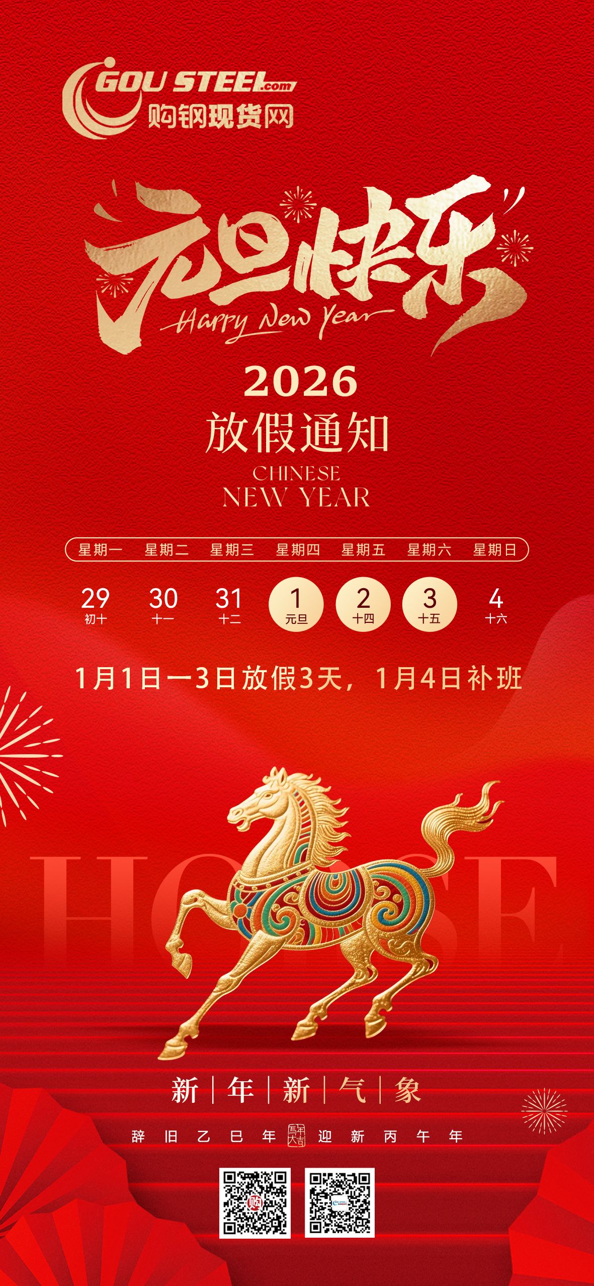 2026购钢现货网元旦放假通知