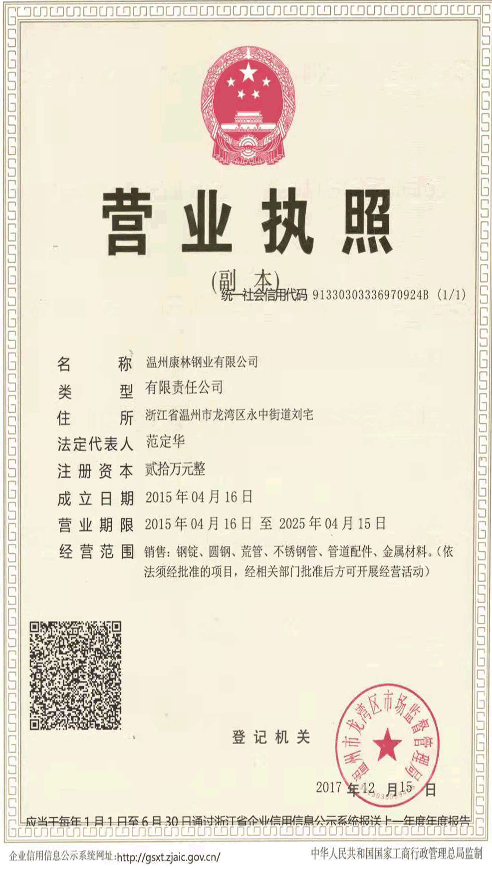 温州康林钢业有限公司坐落于温州市龙湾区永前堆场C区2号。本公司是一家专业生产销售310S(0Cr25Ni20)、2205、2507、904L的不锈钢管产品的公司。 丽水康林管业有限公司经过数年的生产积累对310S、2205、904L生产工艺已十分精湛,生产的产品质量优越,交货及时。并且公司常年备有310S、2205现货1000吨以上,为方便客户可根据客户需要提供零切。