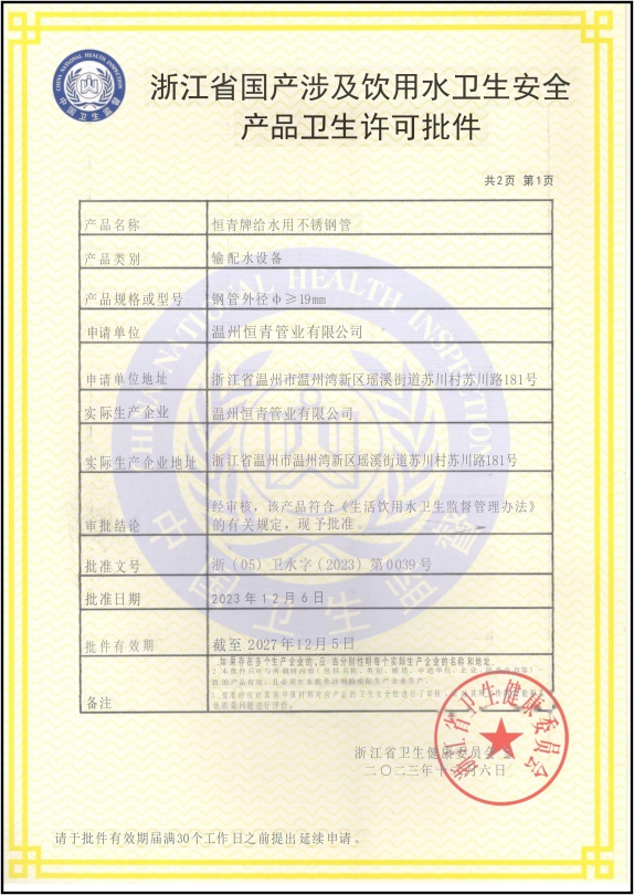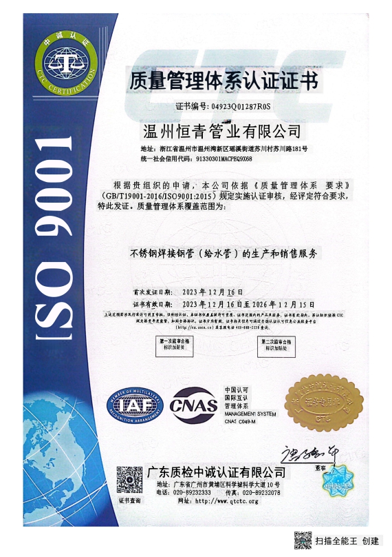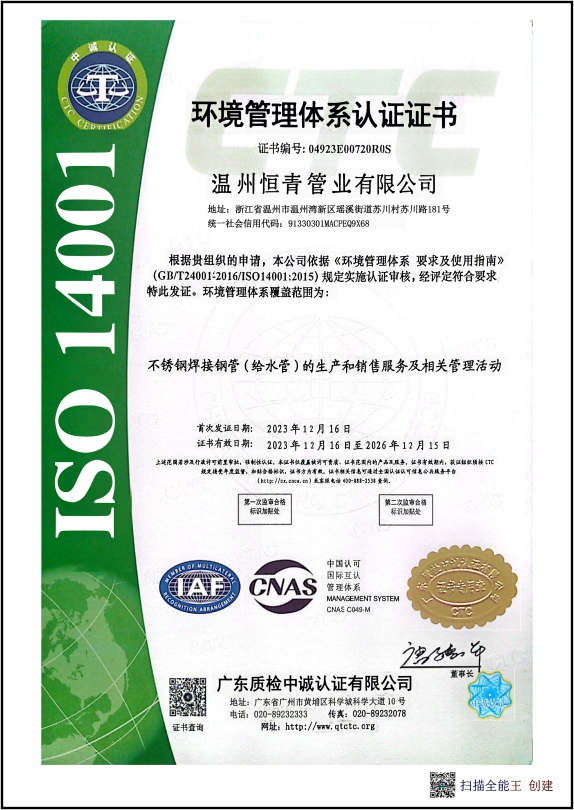 温州恒青管业有限公司专业生产不锈钢焊管、方管卫生级焊管、矩形管等。公司自成立以来,注重产品质量检验、生产工艺程序化建设,严格执行4S管理程序组织,管理组织环环相扣,严格把关产品质量,能更好的做到给用户“一个承诺”,凭着公司的宗旨及优质的产品质量和完善的售后服务,以及良好的诚信经营方式,受到了国内外客户的青睐。